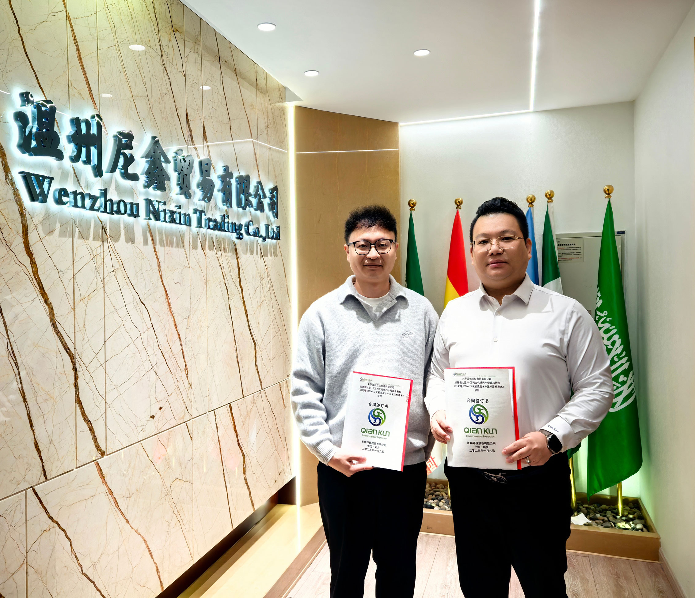 1 月 9 日,本次項目是繼雙方合作歷程中的第四個總承包項目關(guān)鍵簽單。自合作伊始,乾坤環(huán)保與尼鑫國際便如同命運(yùn)的共同體,彼此信任,相互扶持,在環(huán)保領(lǐng)域的前沿探索中砥礪前行,在貿(mào)易的廣闊海洋中乘風(fēng)破浪,在文化的交融碰撞中綻放光芒。如今,在新年的號角聲中,雙方將以更加飽滿的熱情、更加堅定的步伐,向著更高遠(yuǎn)的目標(biāo)奮勇邁進(jìn),共同拉開高質(zhì)量發(fā)展的新篇章。